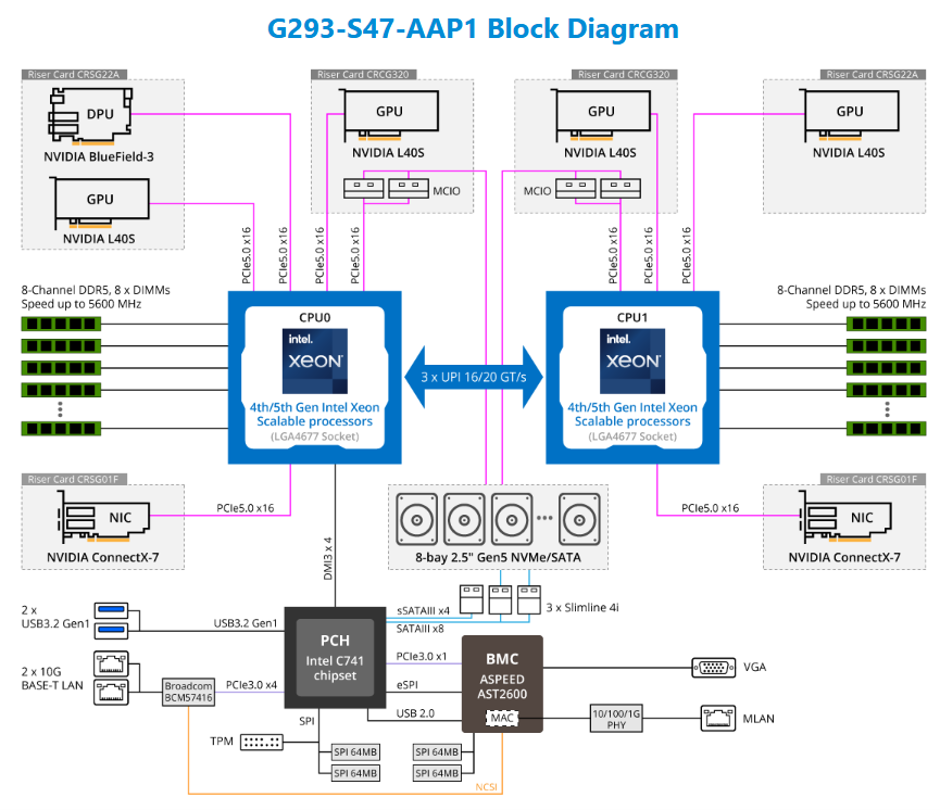 HPC/AI Server - 5th/4th Gen Intel® Xeon® Scalable - 2U DP NVIDIA OVX™ 4 x PCIe Gen5 GPUs