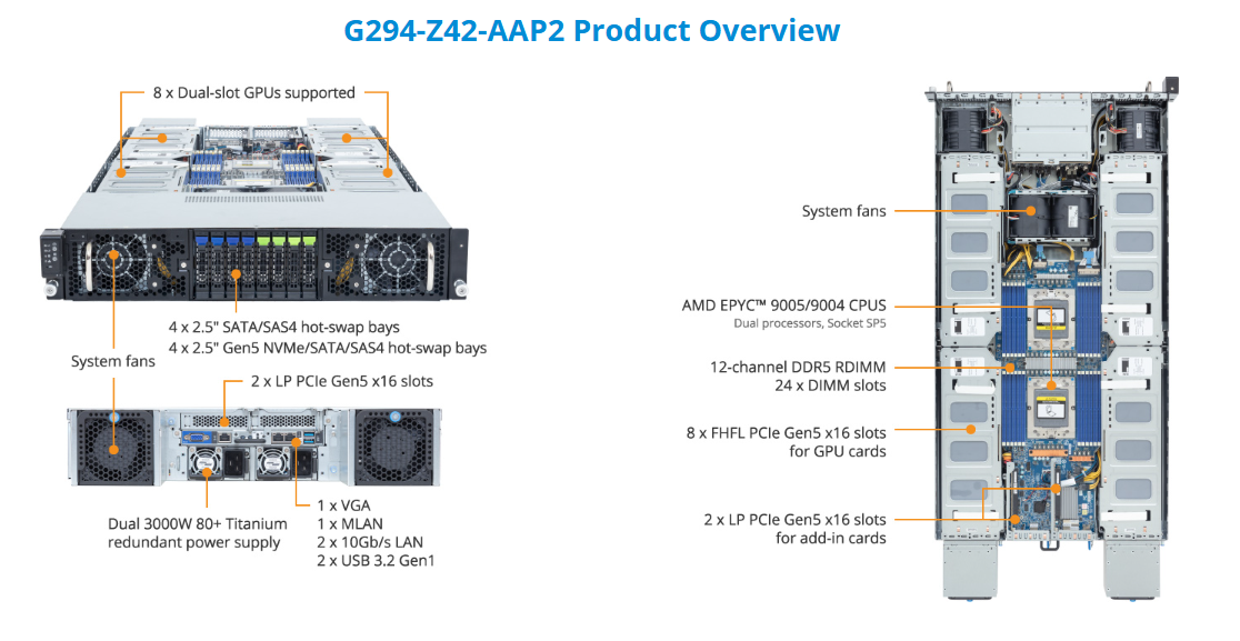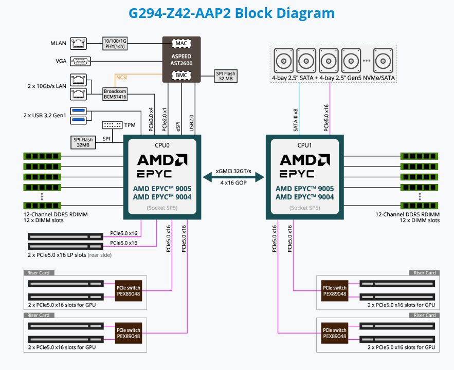 HPC/AI Server - AMD EPYC™ 9005/9004 - 2U DP 8 x PCIe Gen5 GPUs (with PCIe switches)