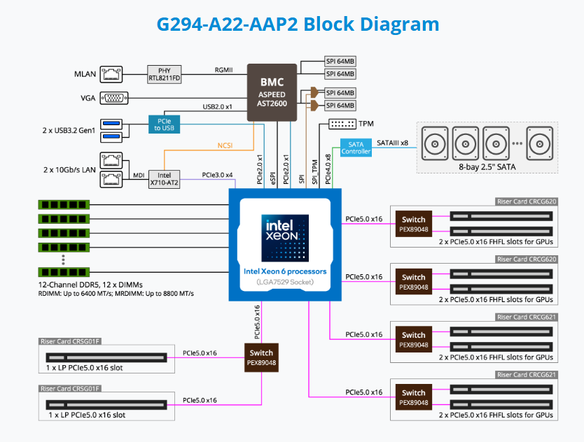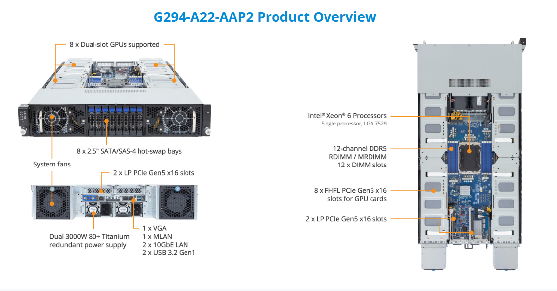 HPC/AI Server - Intel® Xeon® 6 Processors - 2U UP 8 x PCIe Gen5 GPUs (with PCIe switches)