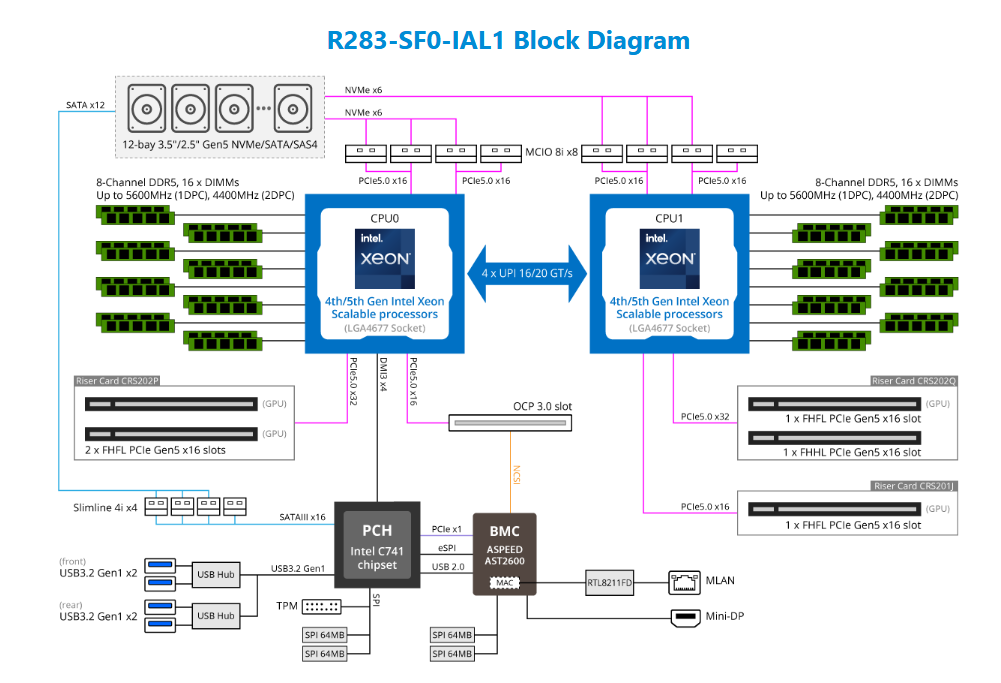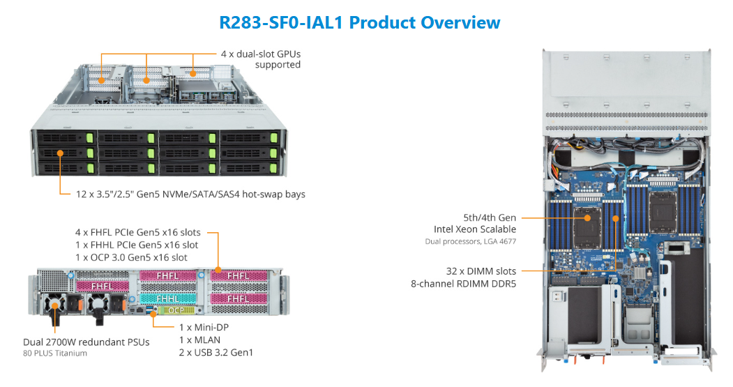 Rack Server - 5th/4th Gen Intel® Xeon® Scalable - 2U DP 4 x PCIe Gen5 GPUs Immersion