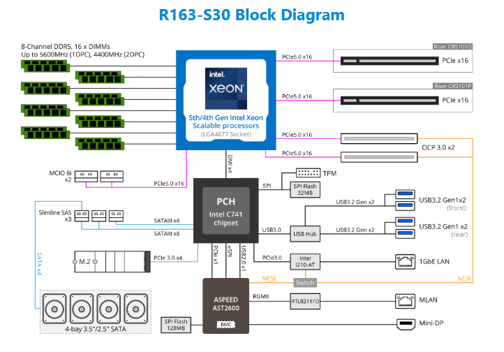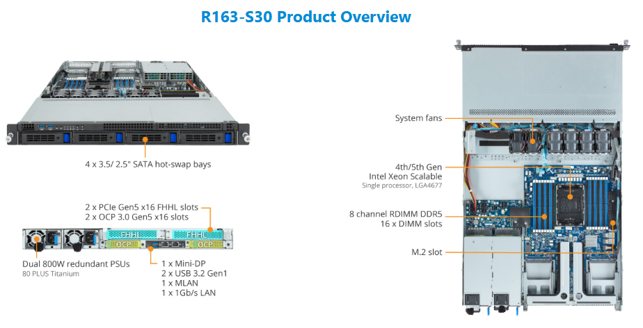 Rack Server - 5th/4th Gen Intel® Xeon® Scalable - 1U UP 4-Bay SATA/SAS Titanium