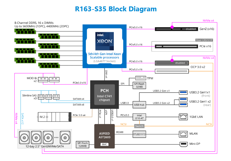 Rack Server - 5th/4th Gen Intel® Xeon® Scalable - 1U UP 12-Bay Gen5 NVMe/SATA/SAS-4