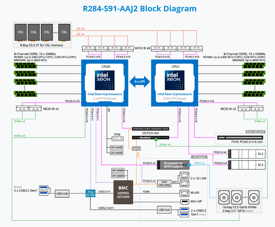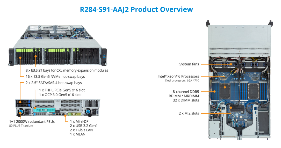 Rack Server - Intel® Xeon® 6 Processors - 2U DP 16-Bay E3.S Gen5 NVMe + 8 x E3.S 2T CXL