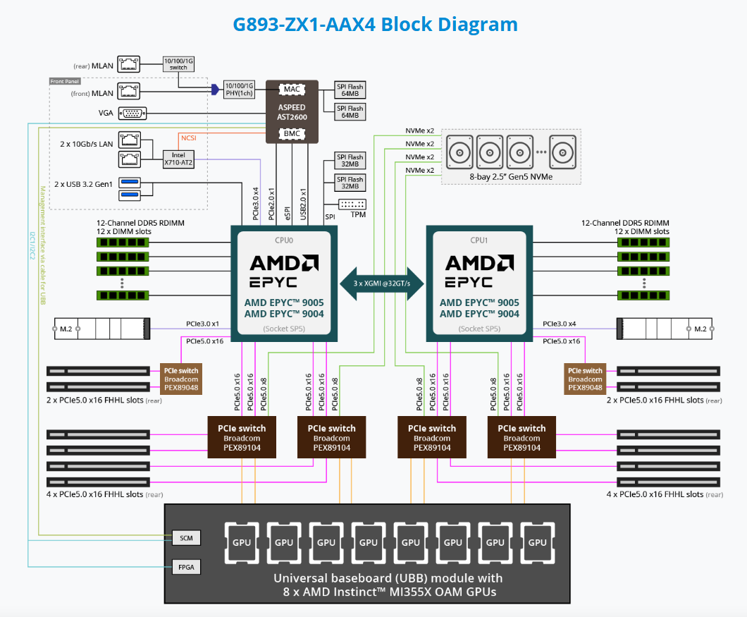 • 8 x AMD Instinct™ MI355X OAM GPUs
