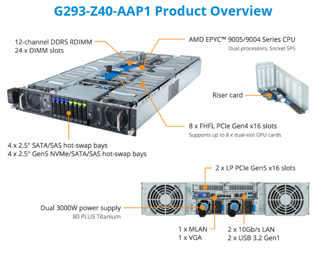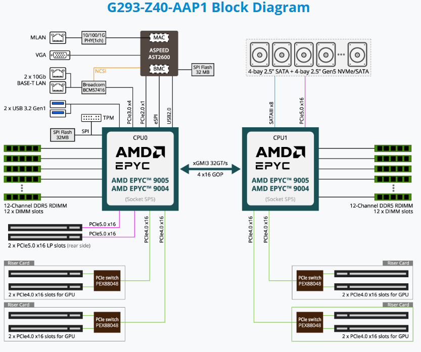 HPC/AI Server - AMD EPYC™ 9005/9004 - 2U DP 8 x PCIe Gen4 GPUs (with PCIe switches)
