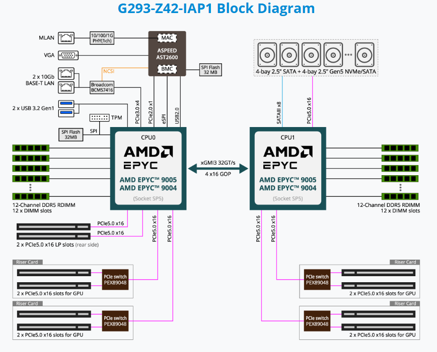 HPC/AI Server - AMD EPYC™ 9005/9004 - 2U DP 8 x PCIe Gen5 GPUs (with PCIe switches) Immersion