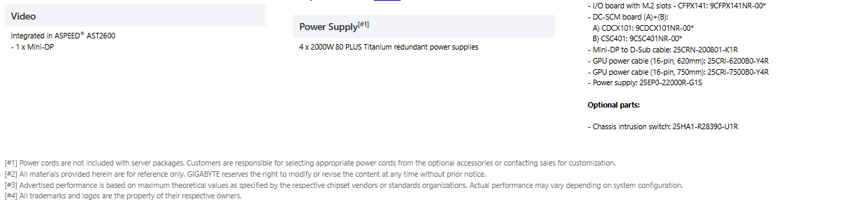 - 4 x 2000W 80 PLUS Titanium redundant power supplies