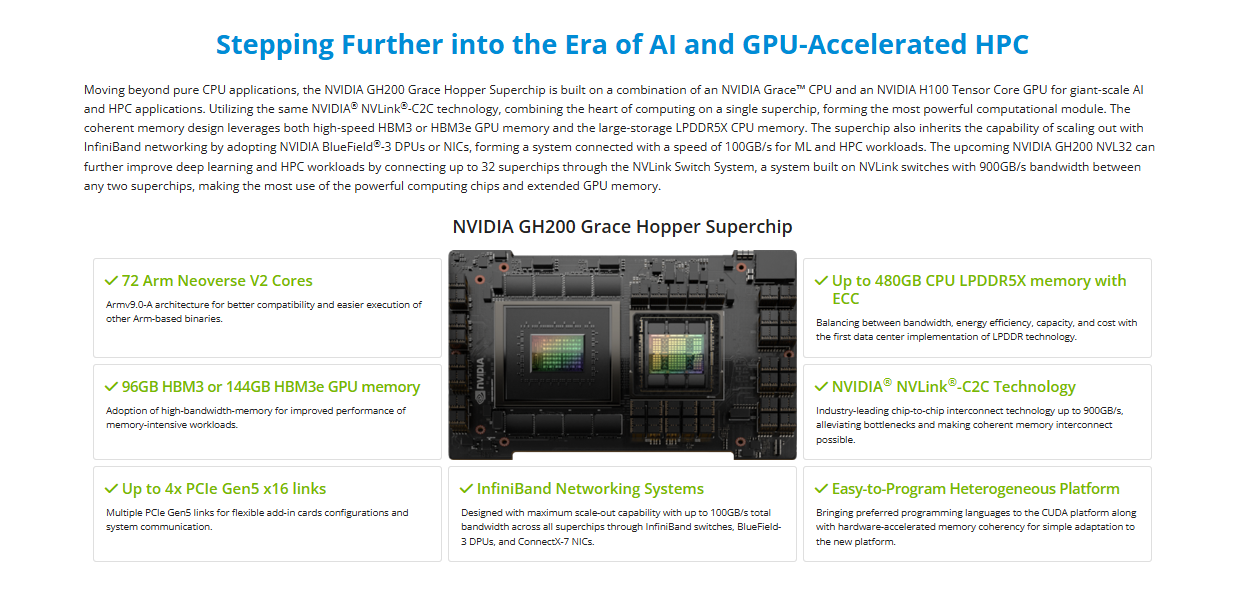 NVIDIA MGX™ Arm Server - NVIDIA Grace™ CPU Superchip - 2U DP 4 x PCIe Gen5 GPUs