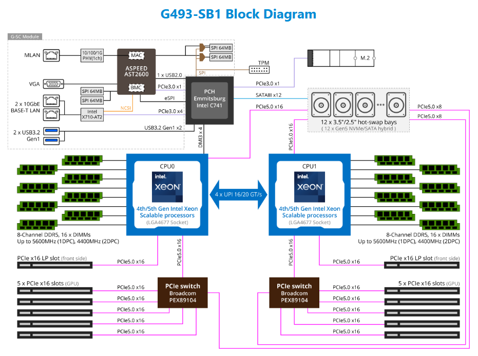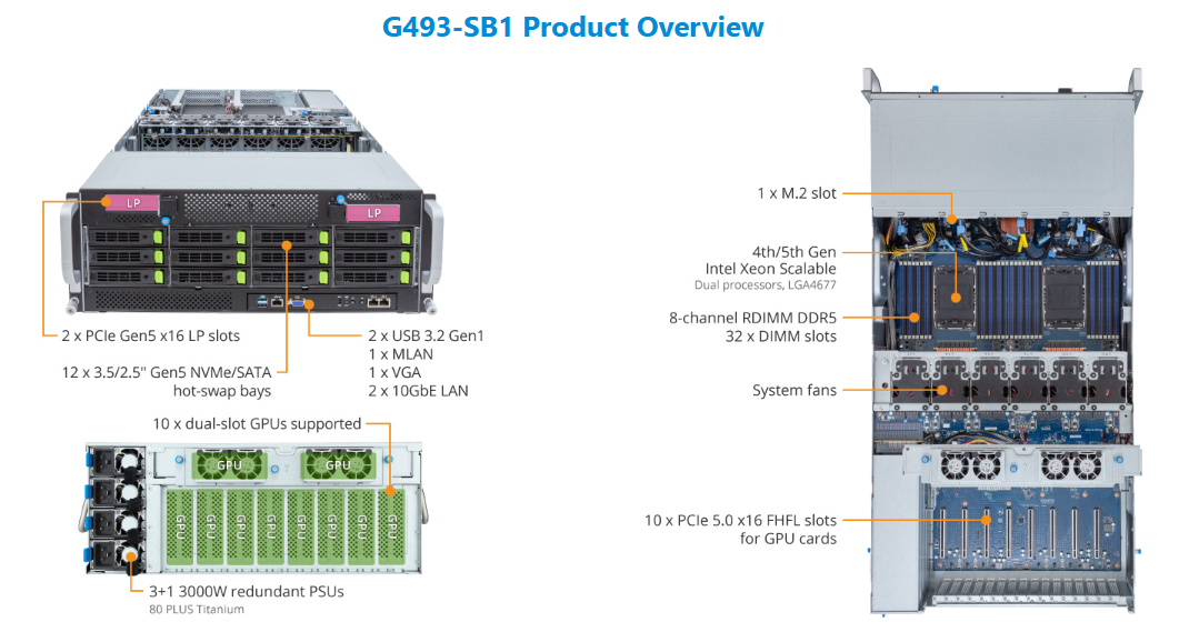 HPC/AI Server - 5th/4th Gen Intel® Xeon® Scalable - 4U DP 10 x PCIe Gen5 GPUs (with PCIe switches)