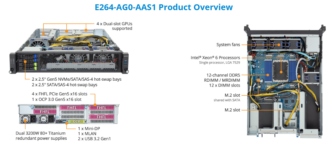 Edge Server - Intel® Xeon® 6 Processors - 2U UP 4 x PCIe Gen5 GPUs
