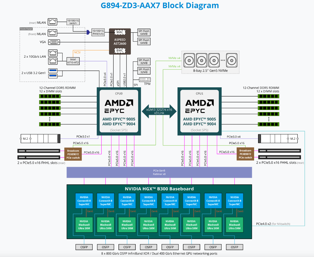 HPC/AI Server - AMD EPYC™ 9005/9004 - 8U DP NVIDIA HGX™ B300