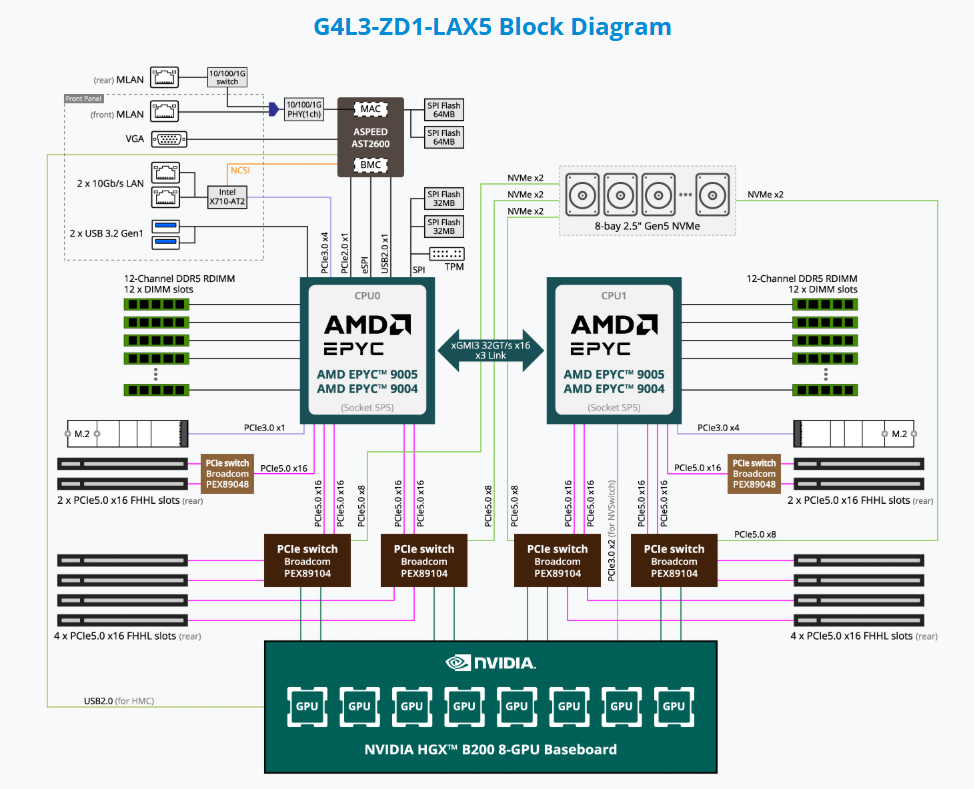 HPC/AI Server - AMD EPYC™ 9005/9004 - 4U DP NVIDIA HGX™ B200 DLC