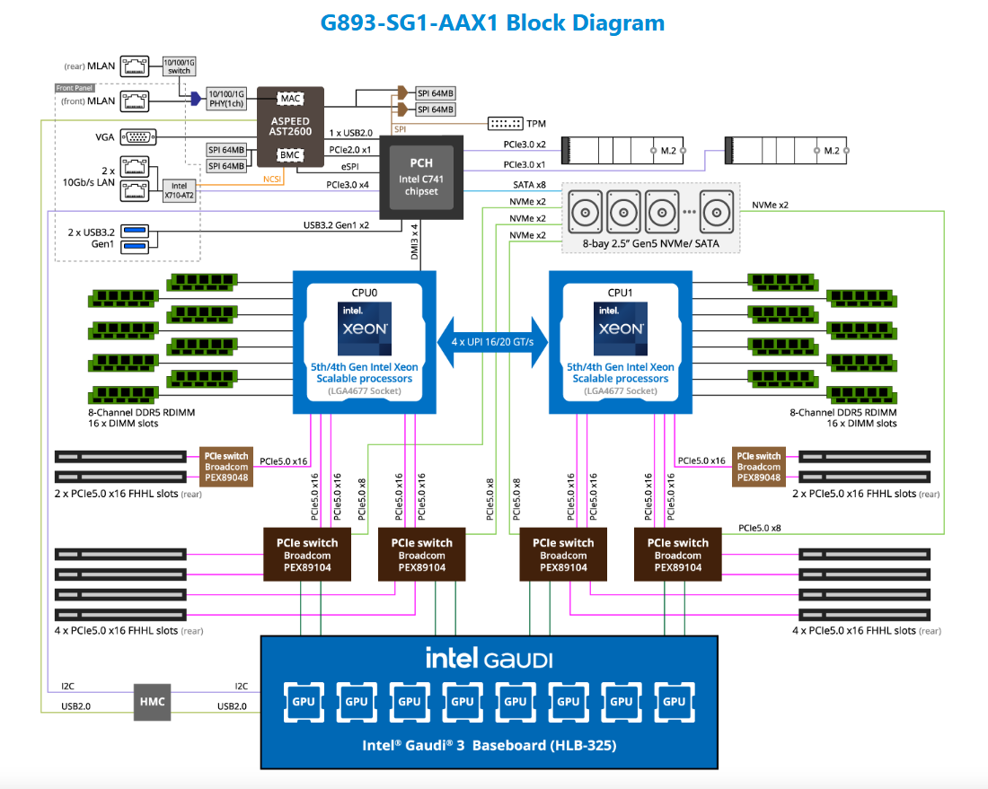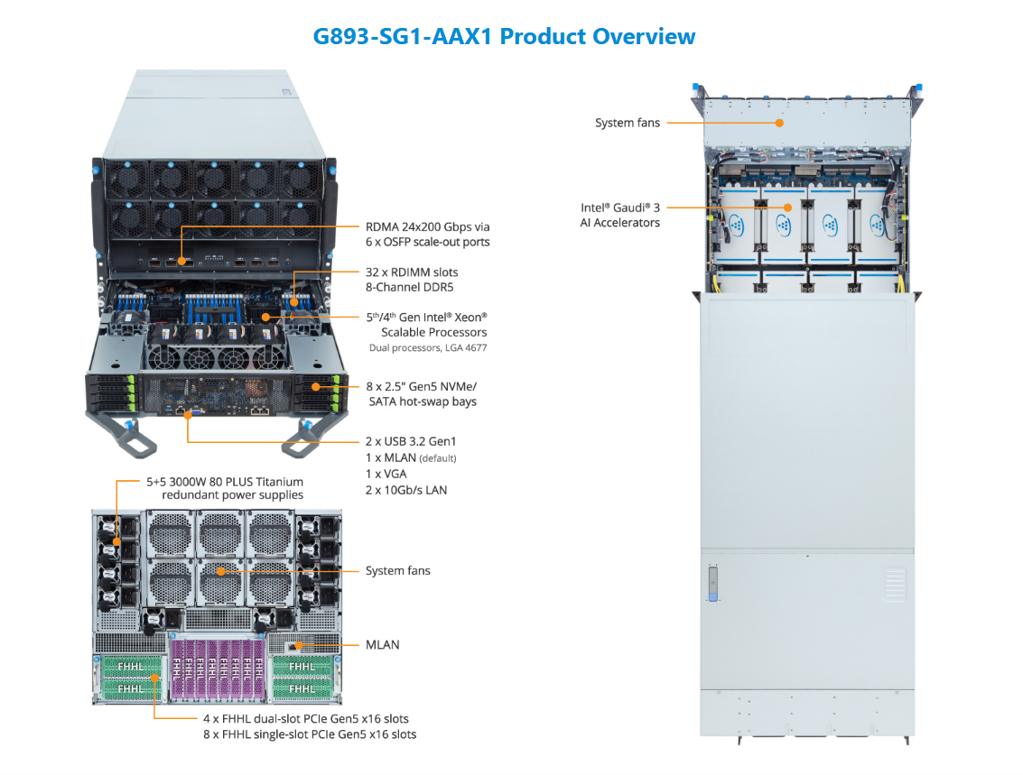 G894-SG1-AAX1 HPC/AI Server - Intel® Xeon® 6 Processors - 8U DP Intel® Gaudi® 3