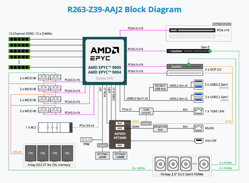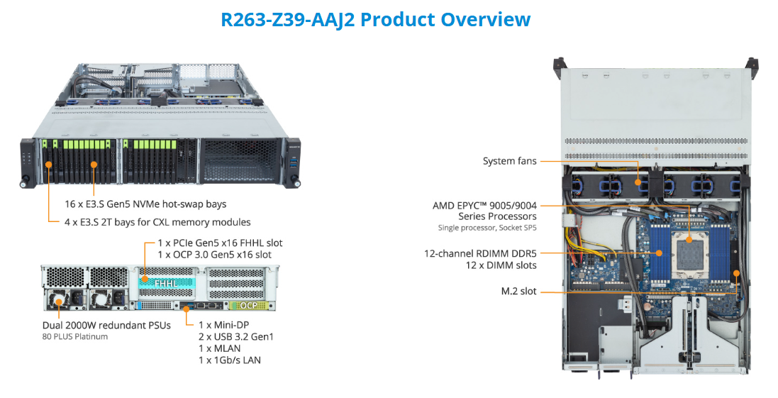 Rack Server - AMD EPYC™ 9005/9004 - 2U UP 16-Bay E3.S Gen5 NVMe + 4-Bay E3.S 2T CXL