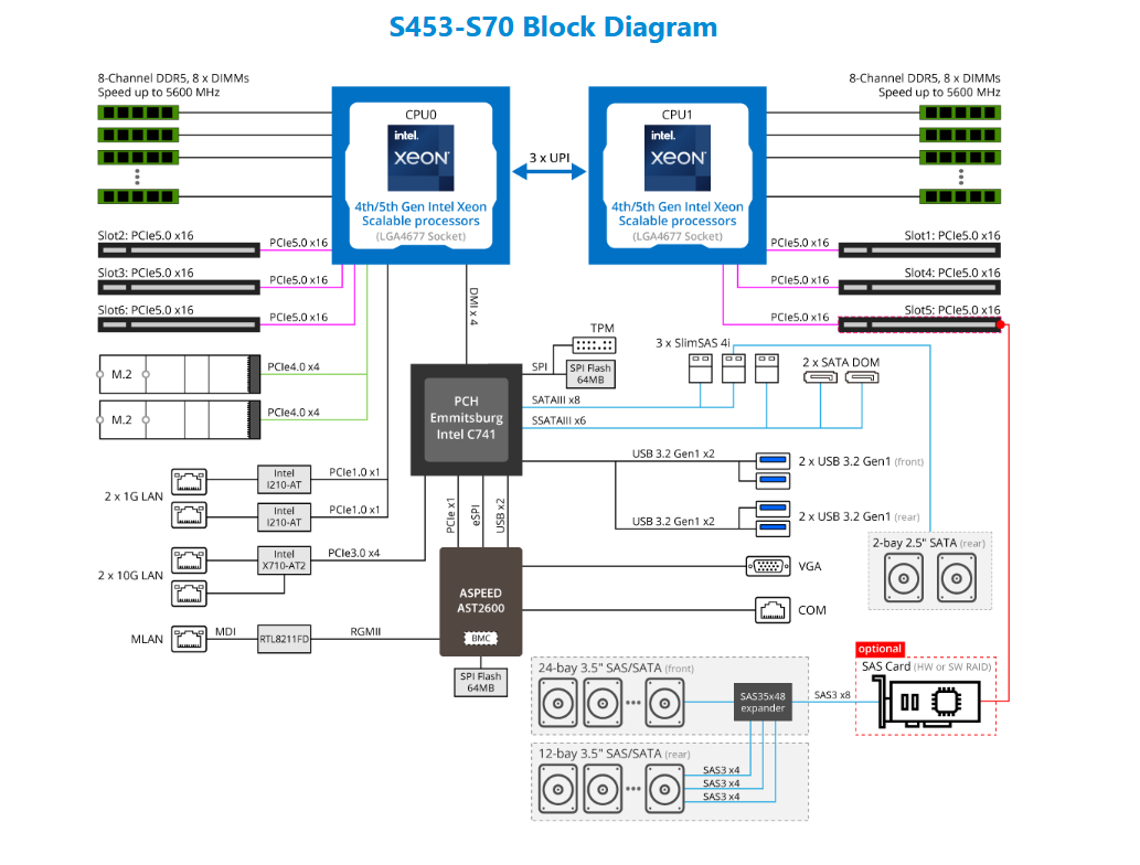 Storage Server - 5th/4th Gen Intel® Xeon® Scalable - 4U DP 36+2-Bay SATA/SAS