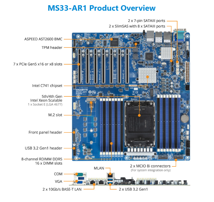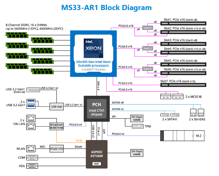 Motherboard - 5th/4th Gen Intel® Xeon® Scalable - E-ATX UP Broadcom Ethernet Controller