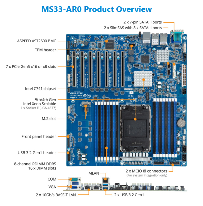 Motherboard - 5th/4th Gen Intel® Xeon® Scalable - E-ATX UP Intel Ethernet Controller